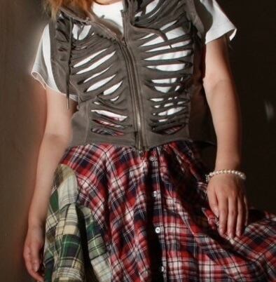 前見頃に肋骨のようなダメージを施し、ダブルジップ仕様なので着こなしの幅も自由自在。重ね着やレイヤードスタイルにも映える、エッジの効いたアイテム。