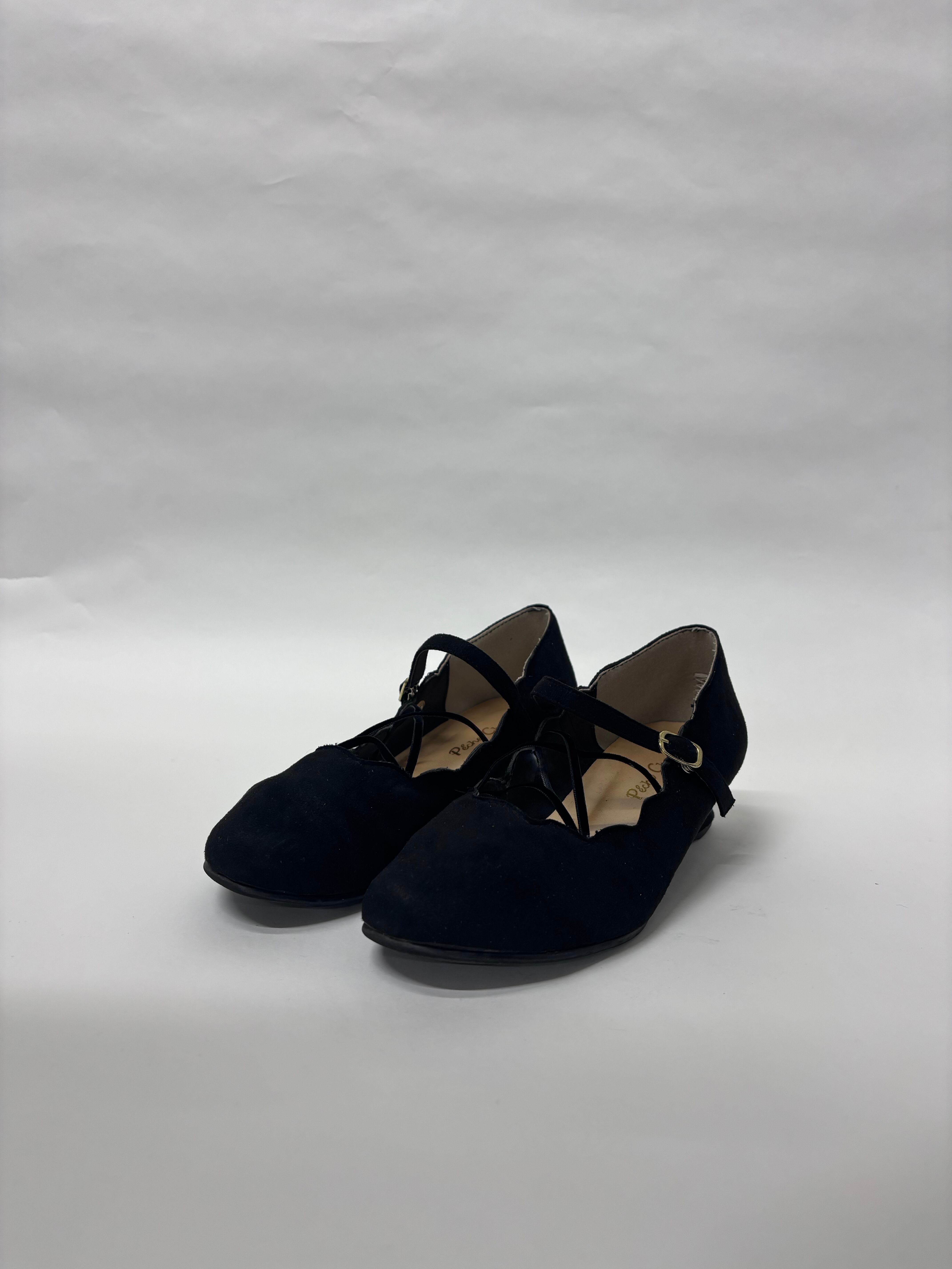 上品な艶感とシンプルなデザインが魅力の黒バレエシューズ。幅広いコーデに活躍。